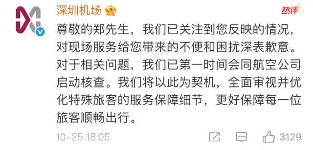 随后深圳机场再评论区道歉,并表示将联合航空公司启动核查。
