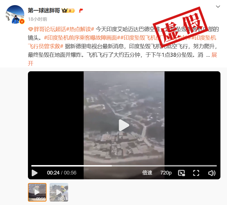 - 网传显示“近日印度客机坠毁前30秒机舱内部画面”的视频,实为2023年1月15日尼泊尔雪人航空YT691航班坠毁事故的现场视频,与近期发生的印度客机坠毁事件无关。